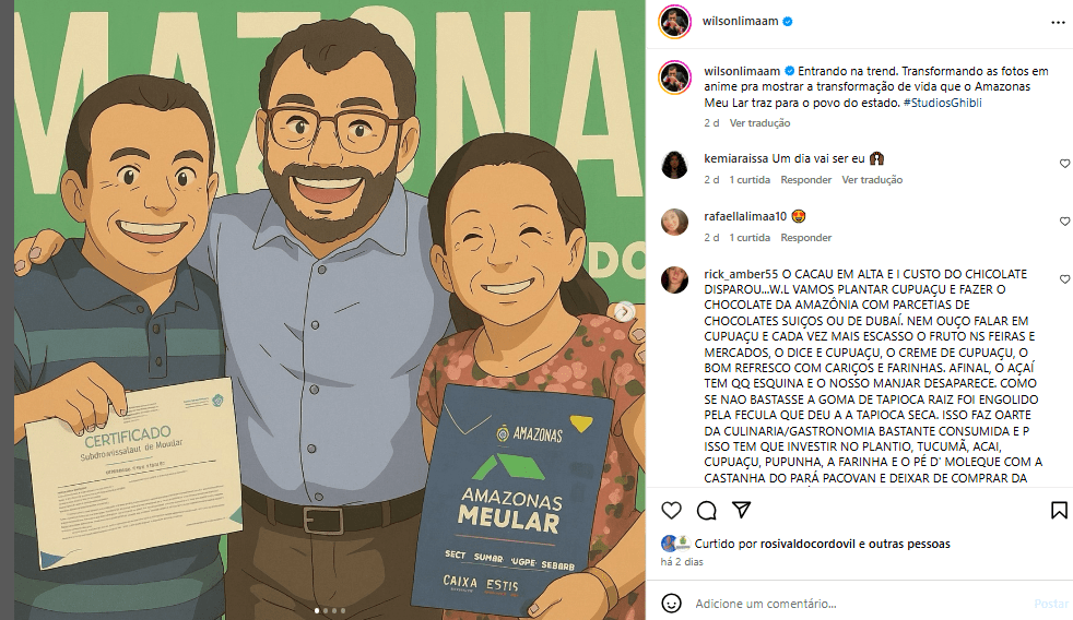Não, não é para aproveitar essa ferramenta poderosíssima de tecnologia e melhorar a qualidade de vida do Povo do Amazonas, o objetivo do alto uso é única e exclusivamente para fazer uma trend (tendencia), em que uma imagem de fotografia é transformada em imagem estilo quadrinho/manga/desenho : olhem abaixo: